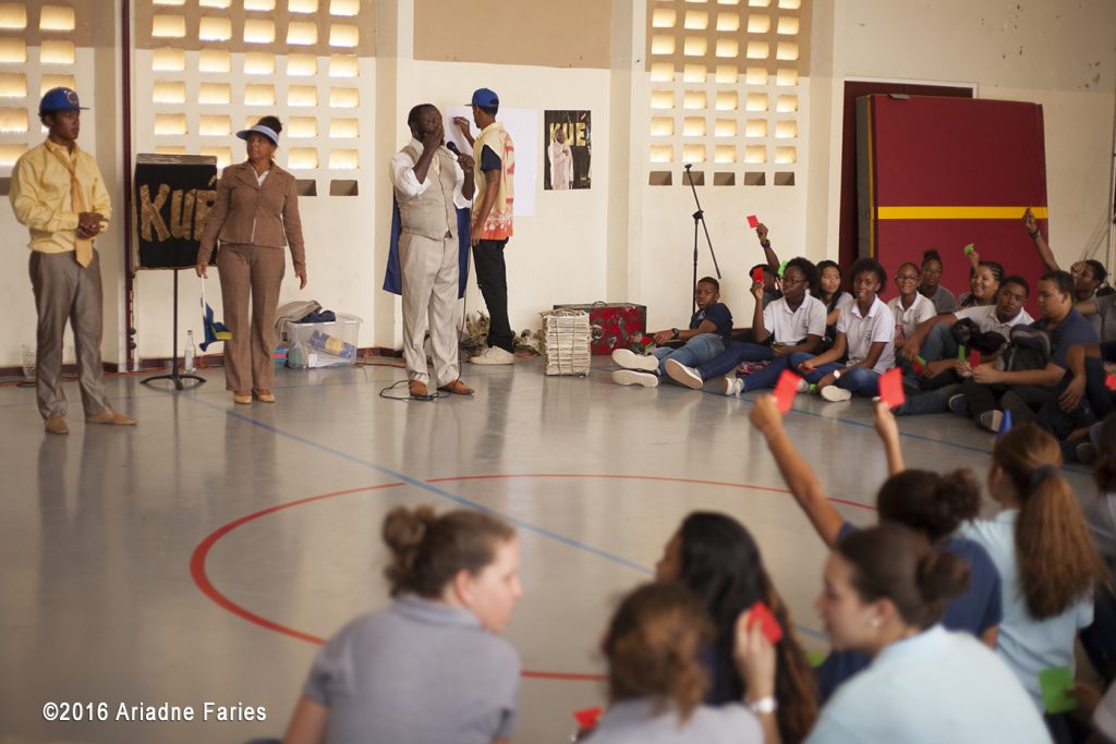 Op vrijdag 13 november aanstaande gaat alweer de vierde grote theaterproductie van Teatro KadaKen sinds 2009 in première. Bos di Nos Pueblo is een uitdagende en vrolijk brutale voorstelling over de politieke cultuur op ons eiland en het gevecht van jongeren om stilzwijgend toe te kijken of een eigen mening te vormen. Na de première volgt een reeks vrije voorstellingen en wordt het stuk klassikaal in scholen voor middelbaar onderwijs opgevoerd, begeleid door een educatief traject.