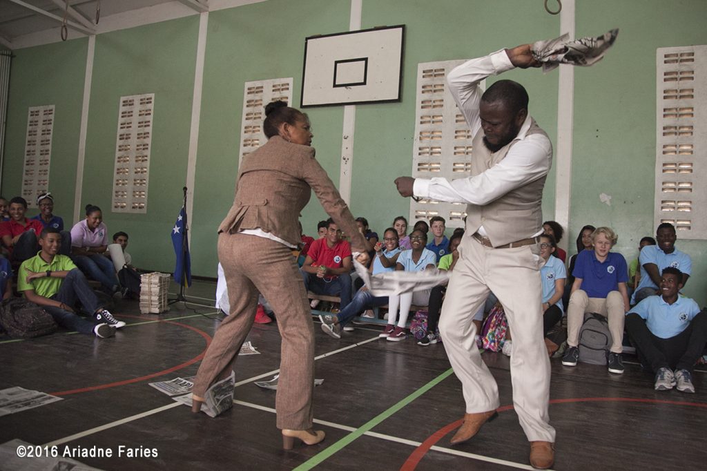 Aanstaande zaterdag 12 december gaat Teatro KadaKen met haar nieuwe theaterstuk Bos di Nos Pueblo (BDNP) de wijken in. Na de première in Kurá di Arte en een voorstelling in Landhuis Bloemhof, is nu de wijk Seru di Papaya aan de beurt. Het buurtcentrum opent enthousiast haar deuren zodat de bewoners van de wijk de voorstelling Bos di Nos Pueblo van Teatro KadaKen kunnen zien.