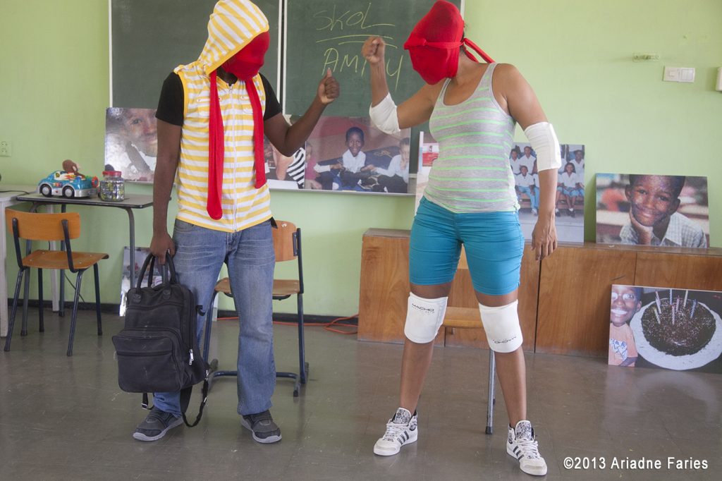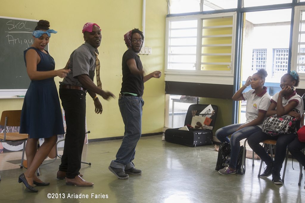 Duur voorstelling totaal 2 lesuur: 60 minuut voorstelling en 30 minuut interactie met de leerlingen. Uitvoering voorstelling in de klas voor maximaal 60 leerlingen. Prijs voorstelling Nafl. 300,– (voor info bel Lou Nisbet 510 25 68/Greta Trapenberg 522 01 25 of via e-mail: inschrijvingkadaken@gmail.com)