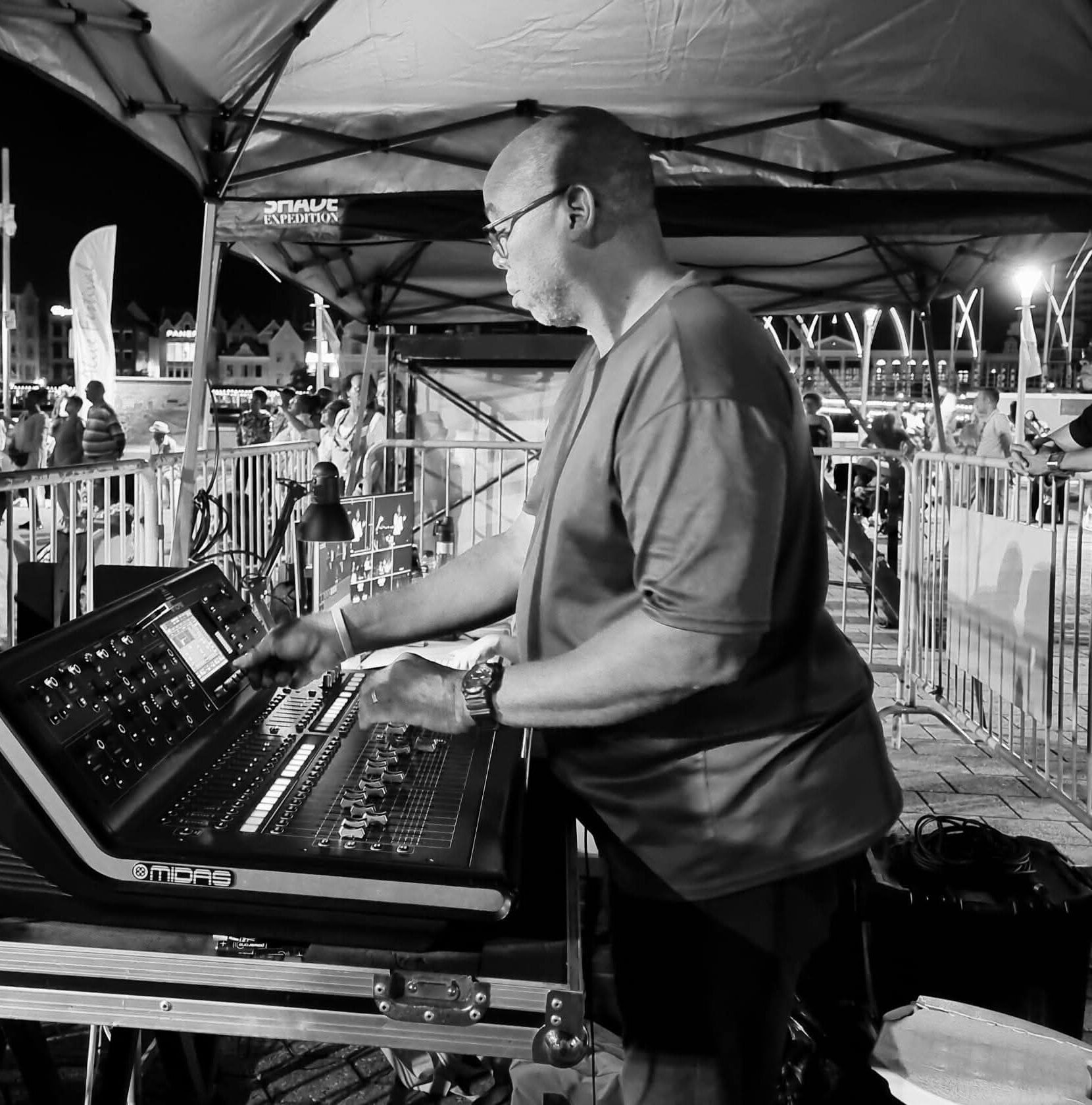 Etienne ta e tékniko di kas pa Teatro Aula. Huntu ku Lou Nisbet, el a pensa kon e infrastruktura tékniko mester ta, i a duna konseho riba aparato ku ta nesesario i nan kosto. E plan detayá i e skèch di infrastruktura, ta loke na su bes Tania Kross por a usa na momentu di kumprá aparato.