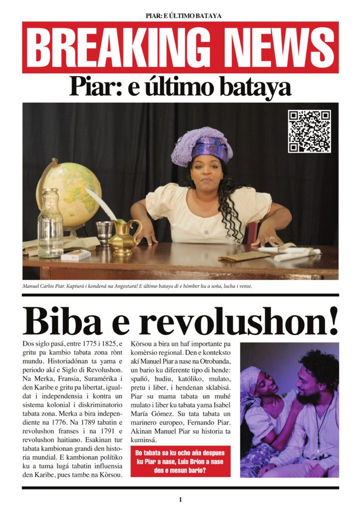 De voorstelling is gebaseerd op het leven van Manuel Piar (1777-1817), een op Curaçao geboren vrijheidsstrijder die een cruciale rol heeft gespeeld in het beëindigen van koloniale onderdrukking in de regio. Piar maakte deel uit van een regionale beweging die nauwe relaties had op Curaçao, en die van groot belang is geweest voor het aanwakkeren van vrijheidsidealen onder de bevolking hier. Piar is een Papiamentstalige voorstelling voor middelbare scholieren en algemeen publiek, met vijf lokale acteurs in een enscenering vol muziek en dans. De muziek is van Eric Calmes.